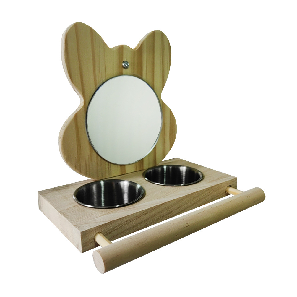 Persediaan burung beo Mainan cangkir makanan cermin kombinasi cermin burung Parrot baja tahan karat mangkuk makanan cangkir air