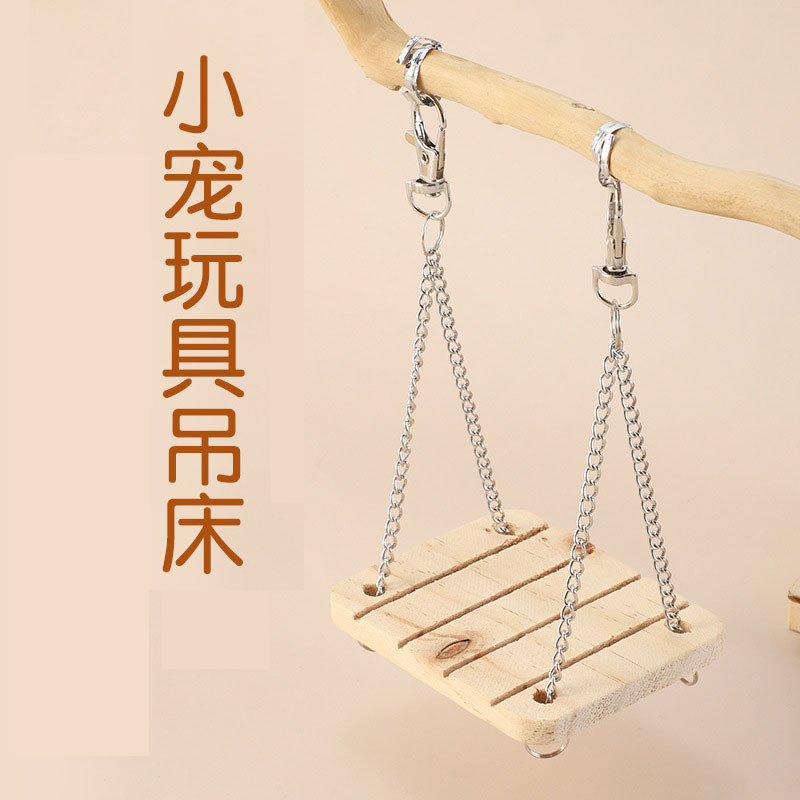 Mainan ayunan kayu untuk hewan peliharaan, mainan panjat log hewan peliharaan kecil, ayunan kayu gantung untuk hamster bayi, perlengkapan molar rantai gantung