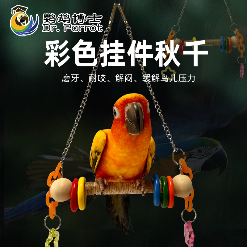 Mainan huruf burung beo dudukan burung, warna-warni bel gantung bel Ding ayunan sangkar burung bayan berdiri burung