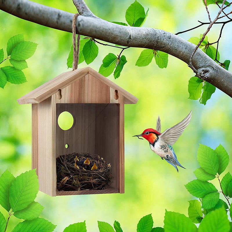 Sarang Burung pemberi makan kayu, sarang burung kreatif rumah burung peliharaan baru gantung luar ruangan