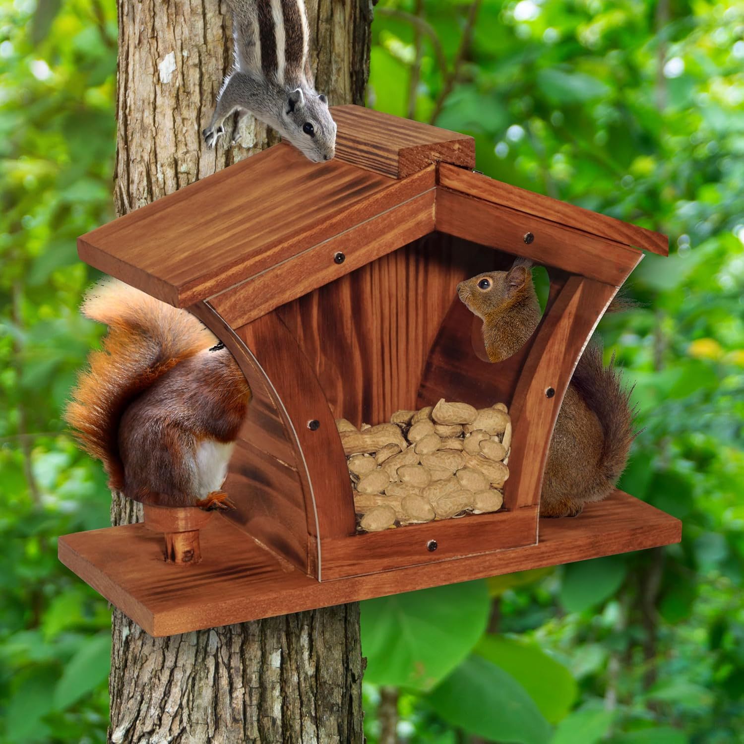 Pengumpan Kayu Tupai Lintas Batas Alat Pengumpan Burung Luar Ruangan Gantung Meja Makan Hewan Peliharaan Burung Platform Sarang Tupai