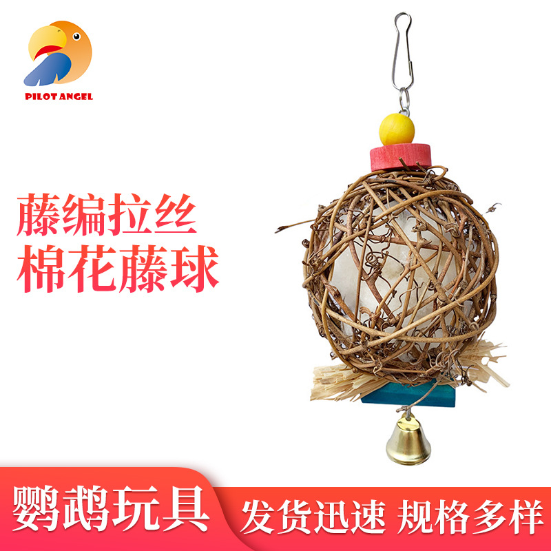 Pabrik grosir burung peliharaan latihan molar rotan Mainan disikat katun nibbling bola rotan mainan burung beo