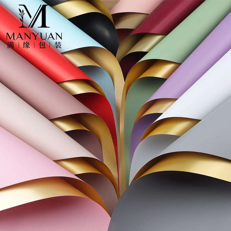 Kertas berwarna emas kertas pembungkus bunga tahan air diy kemasan buket hadiah bunga BOPP film plastik diakses kertas emas mewah