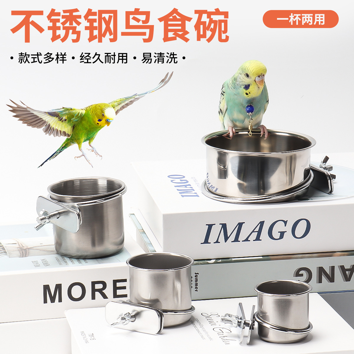 Kotak Makanan Parrot Stainless Steel Alat Pengumpan Burung Kulit Harimau Xuanfeng Peony Anti Percikan Baskom Air Platform Pengumpan Air Grosir