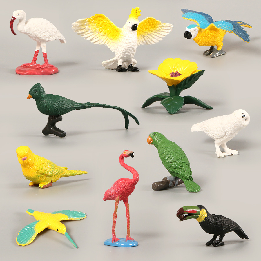 Ornamen mainan burung vinil padat setelan 10 buah burung terbang burung kolibri simulasi burung bayan Flamingo