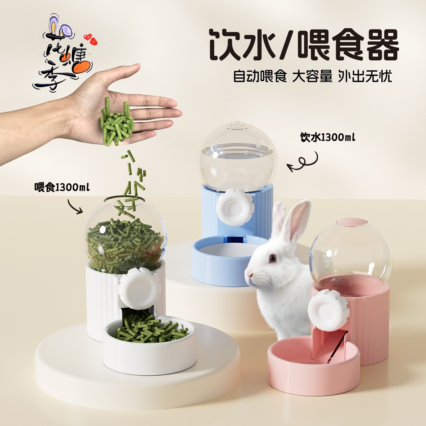 花螗季兔子食盆自动喂食器荷兰猪龙猫豚鼠吃饭专用防扒防打翻食碗