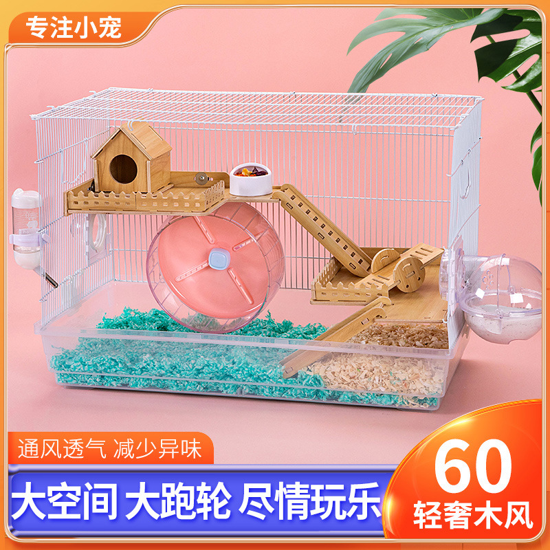 Kandang Hamster lapisan ganda 60, kandang dasar besar sarang beruang emas ukuran plus kandang hamster Villa empat musim Universal
