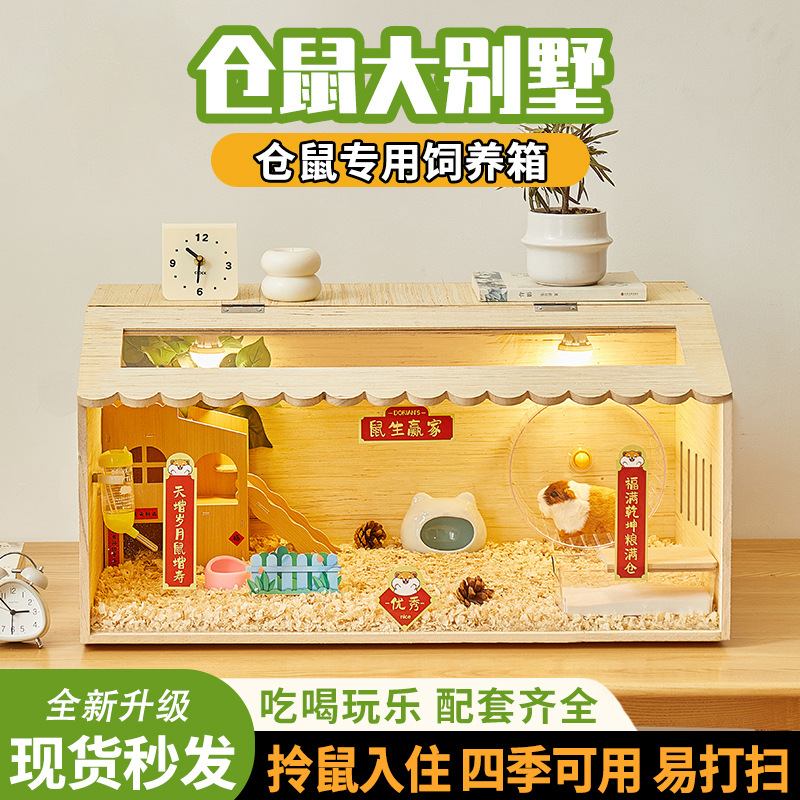 Kotak makan Hamster kandang khusus rumah perlengkapan Beruang Emas setelan lengkap mewah ukuran besar villa kabin kandang tikus