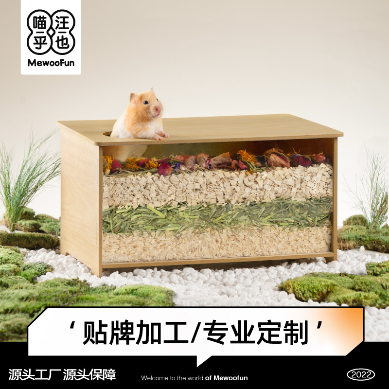 Meow Hu Wang Ye kayu akrilik rumah hamster menggali dari beruang emas lubang bersembunyi sarang