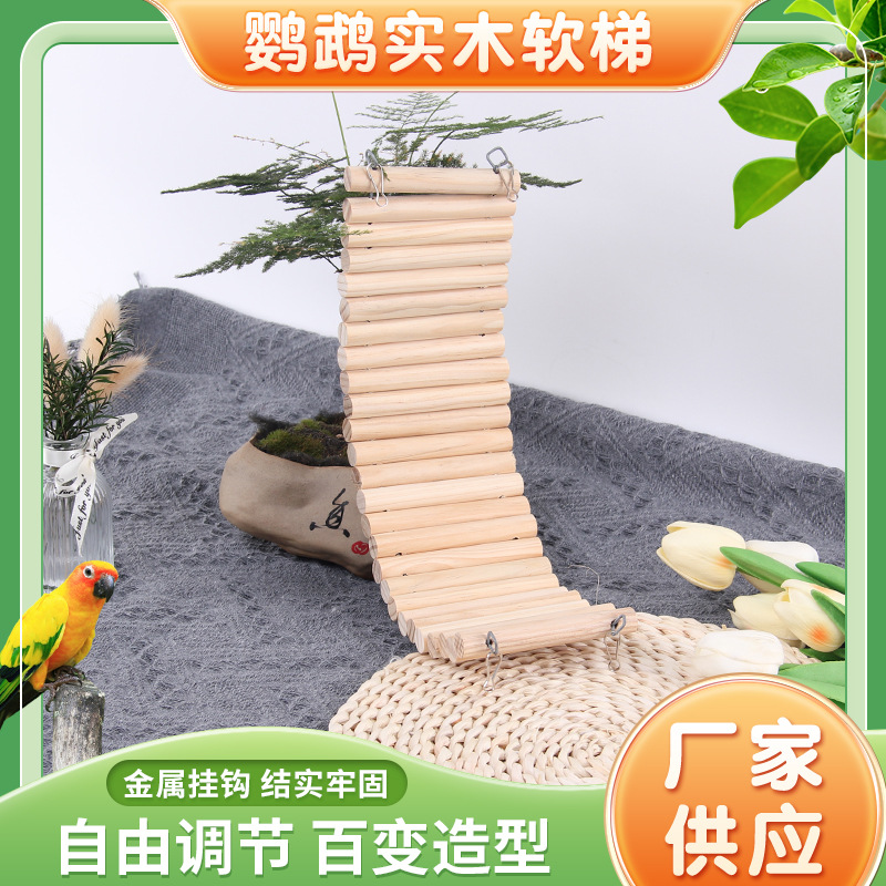 Parrot kayu padat tangga lembut untuk hamster memanjat tangga untuk kulit harimau peony Xuanfeng, persediaan burung Aksesori kandang burung