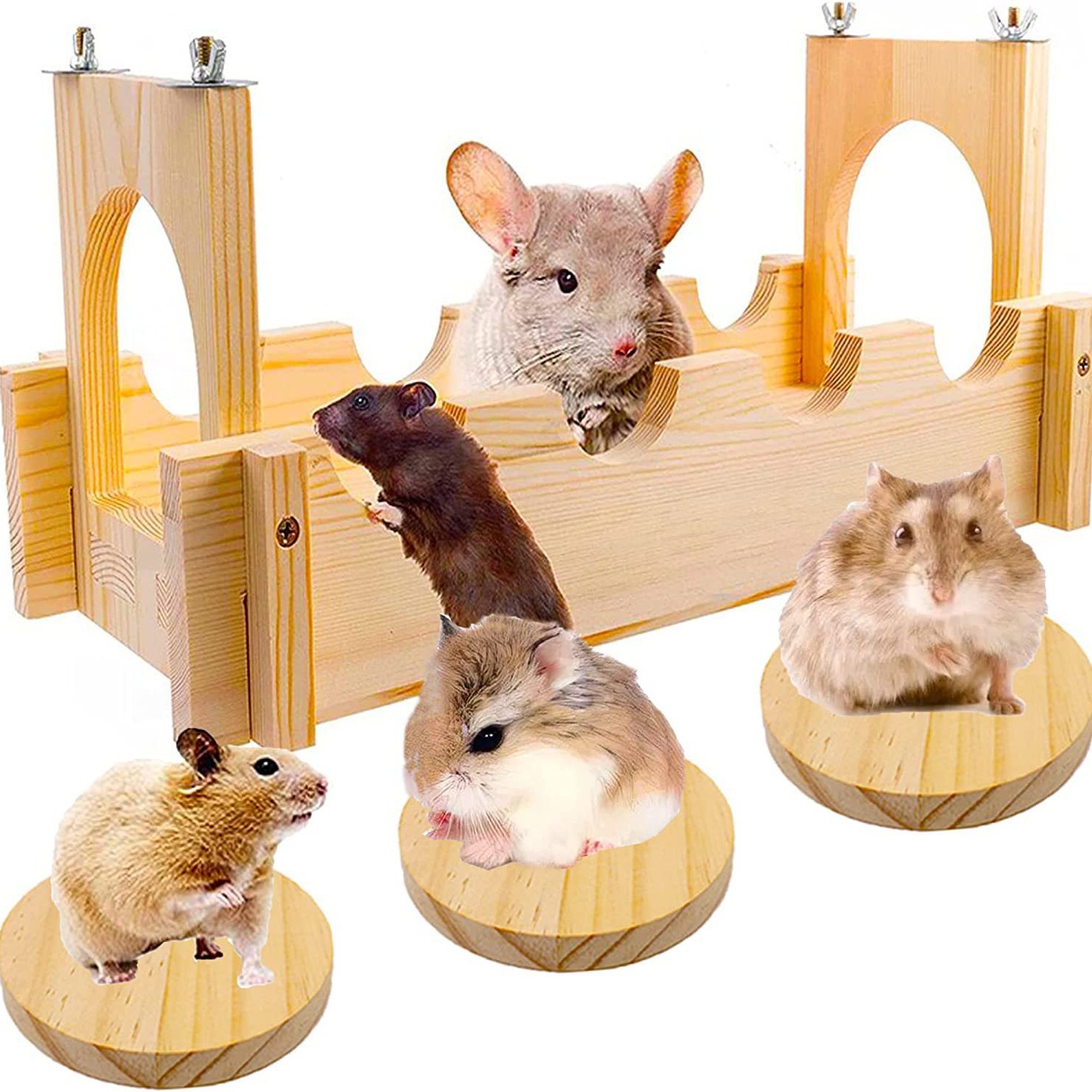 Kandang hewan peliharaan landak ferret tangga terowongan rumah tersembunyi Marmot Hamster burner Aksesori jembatan suspensi kayu dan platform