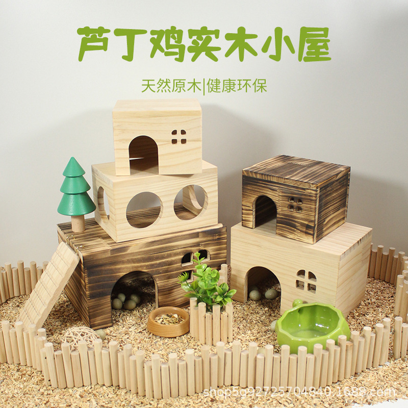 Hamster Beruang Emas ayam Durin Totoro bunga kelinci kecil tikus bercabang Belanda babi tempat berlindung sarang kayu padat vila kecil kayu