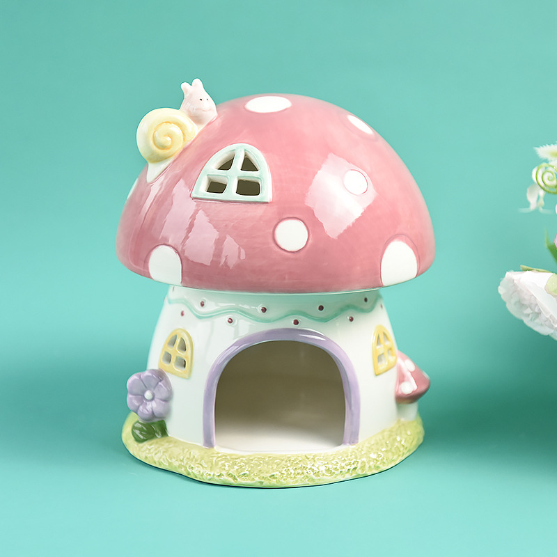 Kandang Hamster keramik rumah Kastil jamur Beruang Emas kelinci rumah sembunyi tetap ornamen warna-warni sarang tidur siang