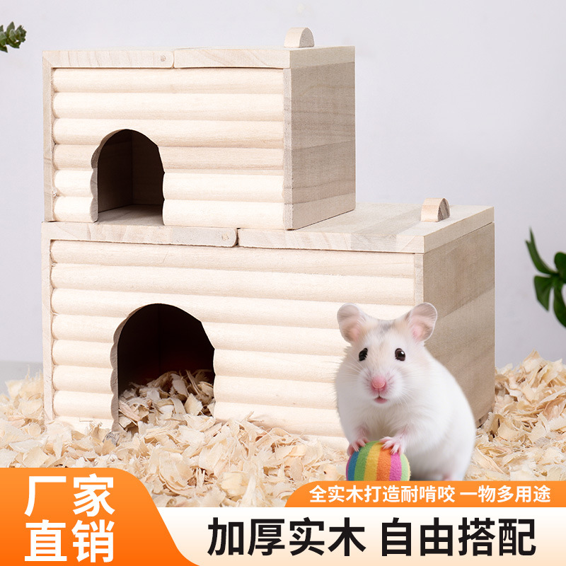 Kamar tidur tupai kayu padat kandang tidur Belanda berpigmen Totoro kelinci beruang emas rumah kecil hewan peliharaan kecil landak