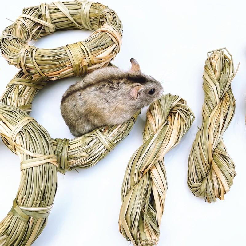 Produk Hewan Peliharaan Bola Takraw Bola Rumput Buatan Tangan Bola Anyaman Hewan Peliharaan Kecil Mainan Gigitan Hamster Kelinci Menggigit