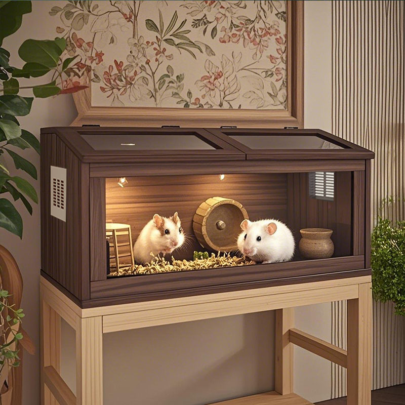 Golden Bear Hamster Sangkar Kayu Hedgehog Mewah Besar Villa Hamster Sangkar Empat Musim Khusus Hewan Peliharaan Rumah Pondok