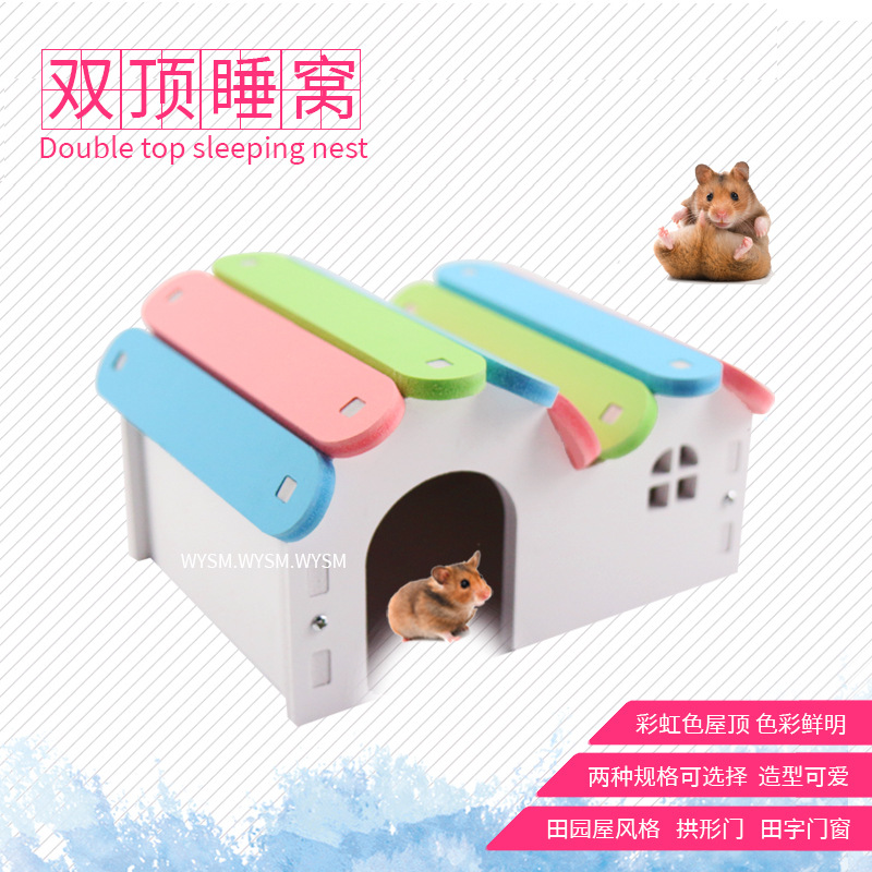 Sarang hamster tidur Double-top, perlengkapan mainan kandang hamster rumah atap ganda rumah