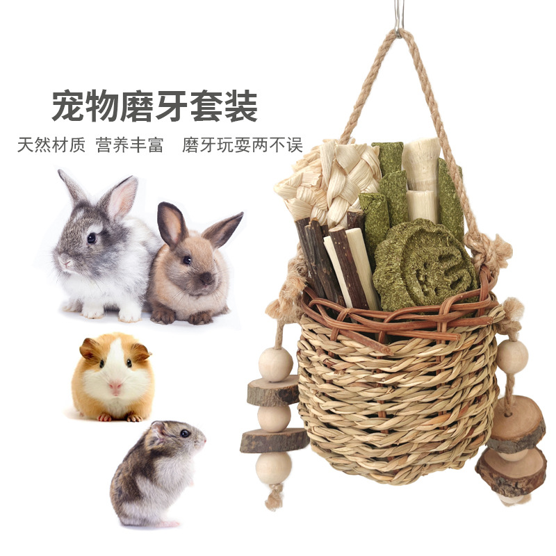 Mainan sedotan gigitan kelinci Totoro stik teether hewan peliharaan kombinasi hamster guinea pig stik sedotan kayu apple makanan ringan nutrisi