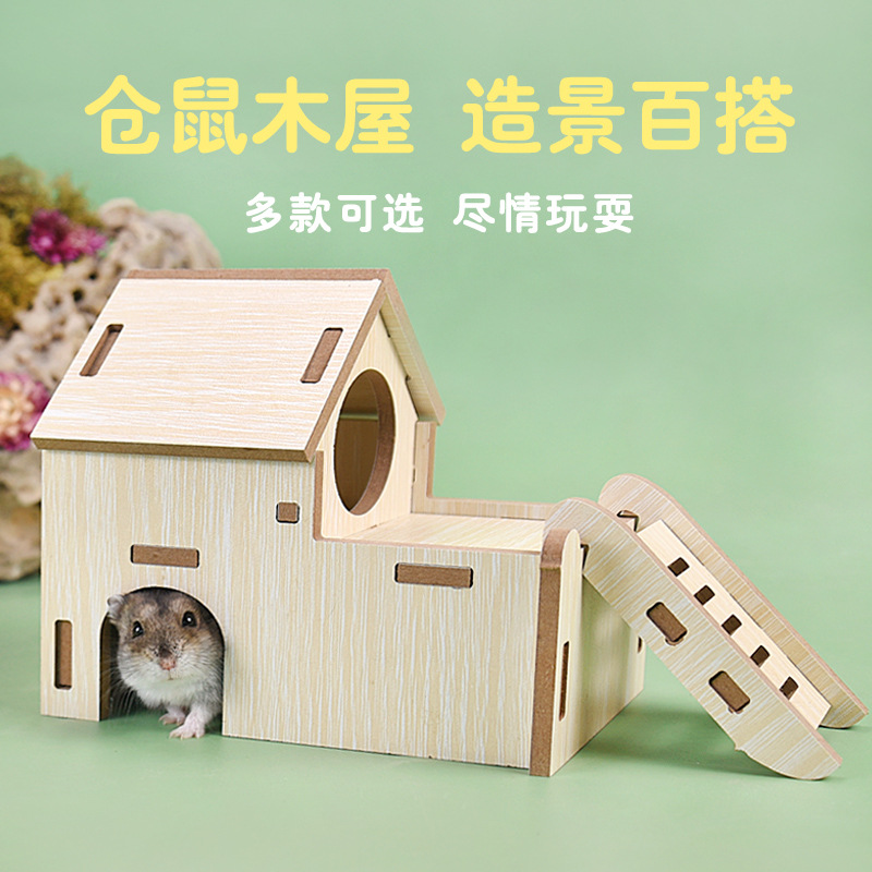 Kandang hamster lintas batas grosir perlengkapan dekorasi kayu hamster emas villa multi-ruangan tempat bersembunyi hamster kecil