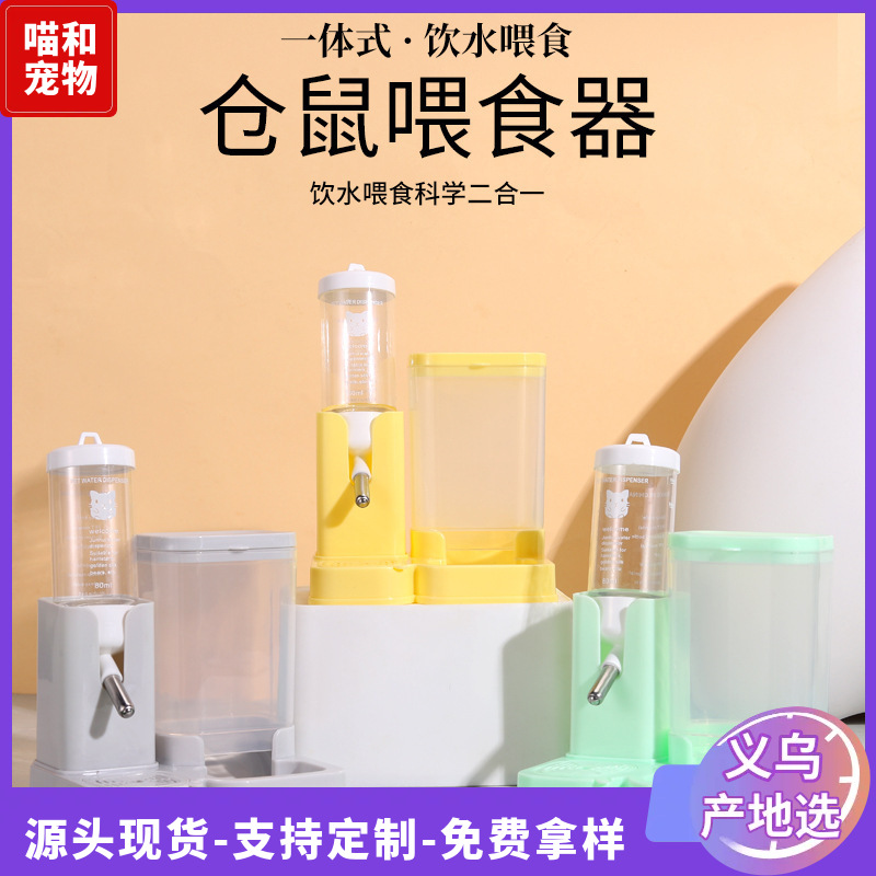 Tempat makan otomatis hamster, dispenser air anti bocor, tempat makan burung beo, mangkuk makanan hamster multifungsi anti tumpah terintegrasi