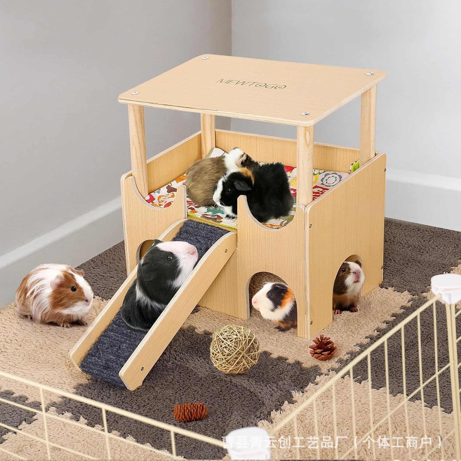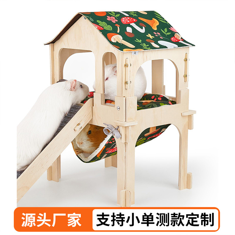 Tempat persembunyian babi guinea kayu hamster memanjat tangga hewan peliharaan tempat tidur gantung dekoratif dua lapis