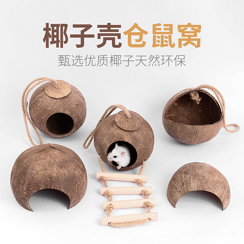 Kandang Hamster sarang beruang emas rumah tersembunyi cangkang kelapa pendingin musim panas kandang kecil persediaan mainan landak rumah
