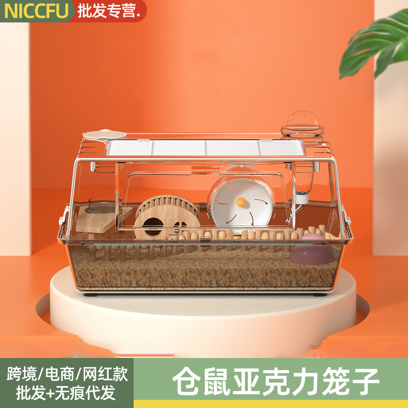NC kandang hamster akrilik transparan kotak makan hewan peliharaan lanskap mewah villa Totoro marmut sarang beruang emas