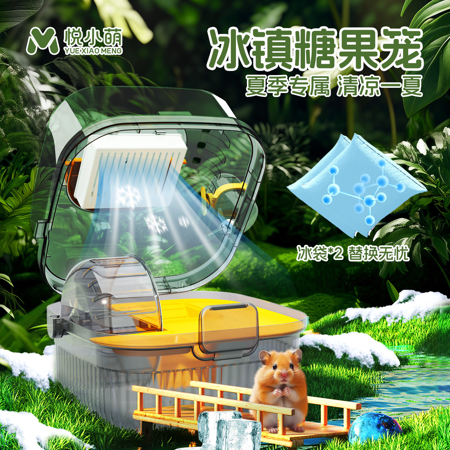 Yue Xiaomeng Hamster Kandang Beruang Emas Iloo Musim Panas Rumah Dingin Kamar Mewah Rumah ber-AC Di Luar