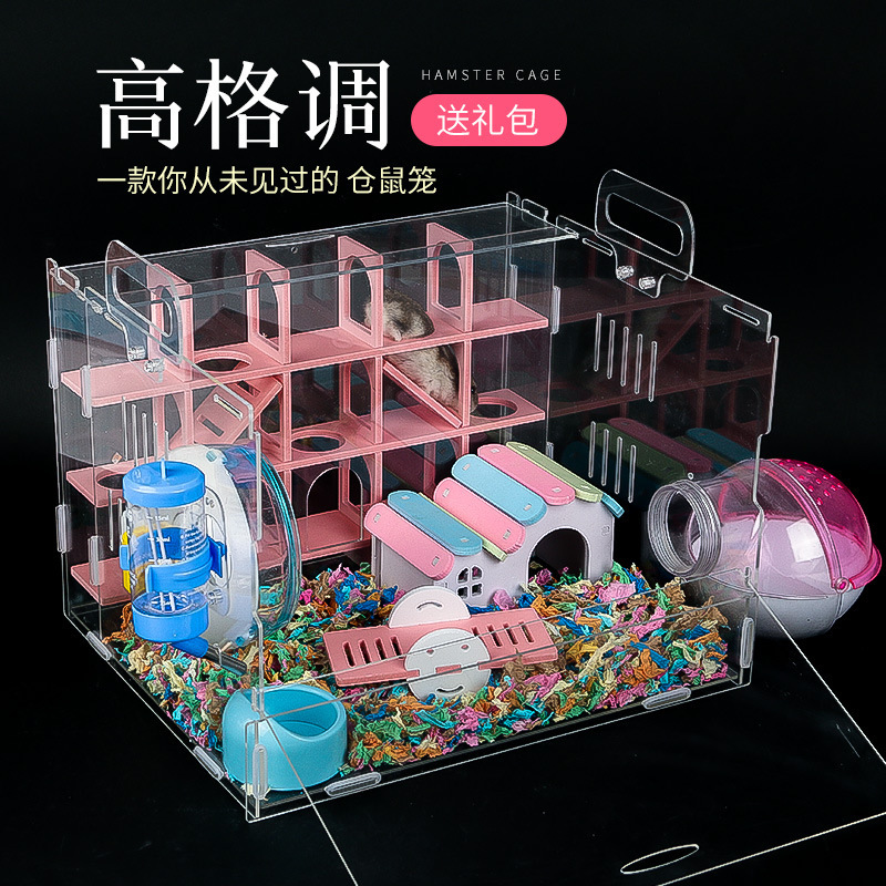 Xingwen kandang hamster akrilik, kandang beruang emas lapisan ganda, perlengkapan mainan Villa transparan ukuran besar gratis pengiriman