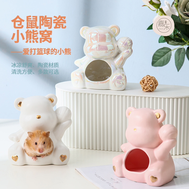 Sarang keramik hamster Seri Beruang musim panas grosir rumah tersembunyi besar sarang hewan peliharaan kecil pendingin tahan musim panas gaya ins
