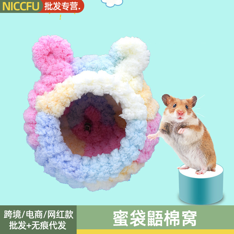 NC sarang hamster beruang emas, sarang madu, sarang hewan peliharaan hangat, sarang bulu bergaris bulu madu, sarang tidur hangat musim dingin