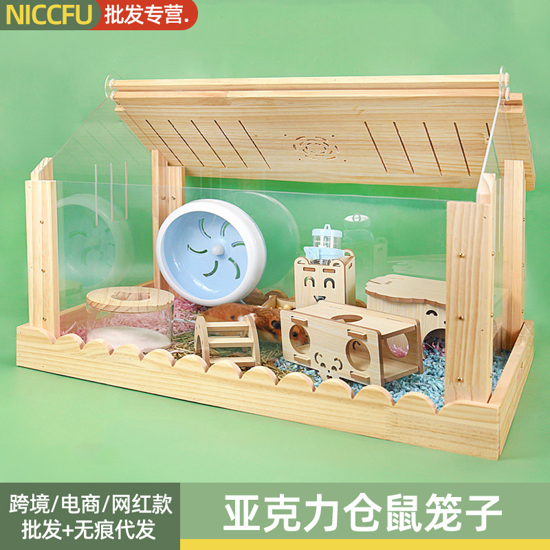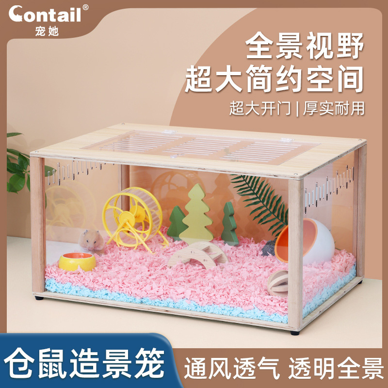 NC kandang hamster akrilik kandang kayu transparan lanskap super besar mewah besar villa landak kecil ornamental pembiakan hewan peliharaan