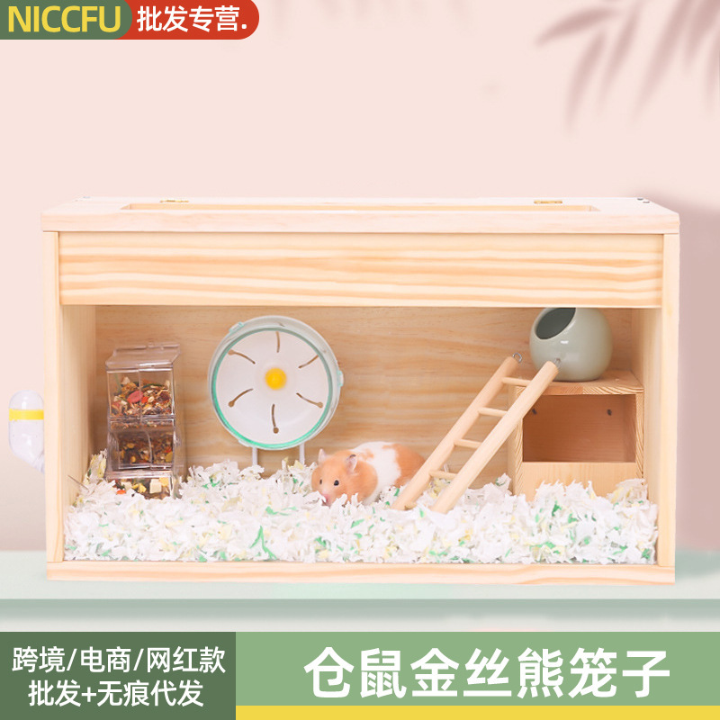 NC kandang hamster Beruang Emas transparan kayu hangat kotak makan lansekap rutin ayam landak Totoro madu sigung kandang