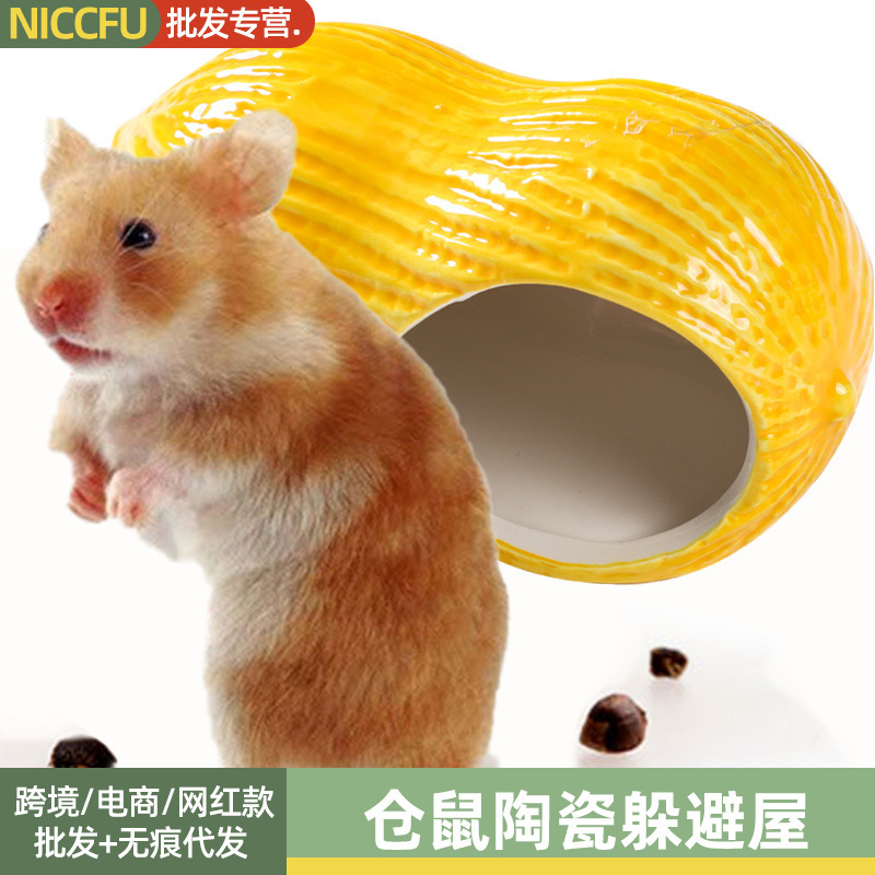Rumah Tersembunyi keramik Hamster, sarang tidur empat musim Universal, sarang bunga landak Totoro, pendingin musim panas