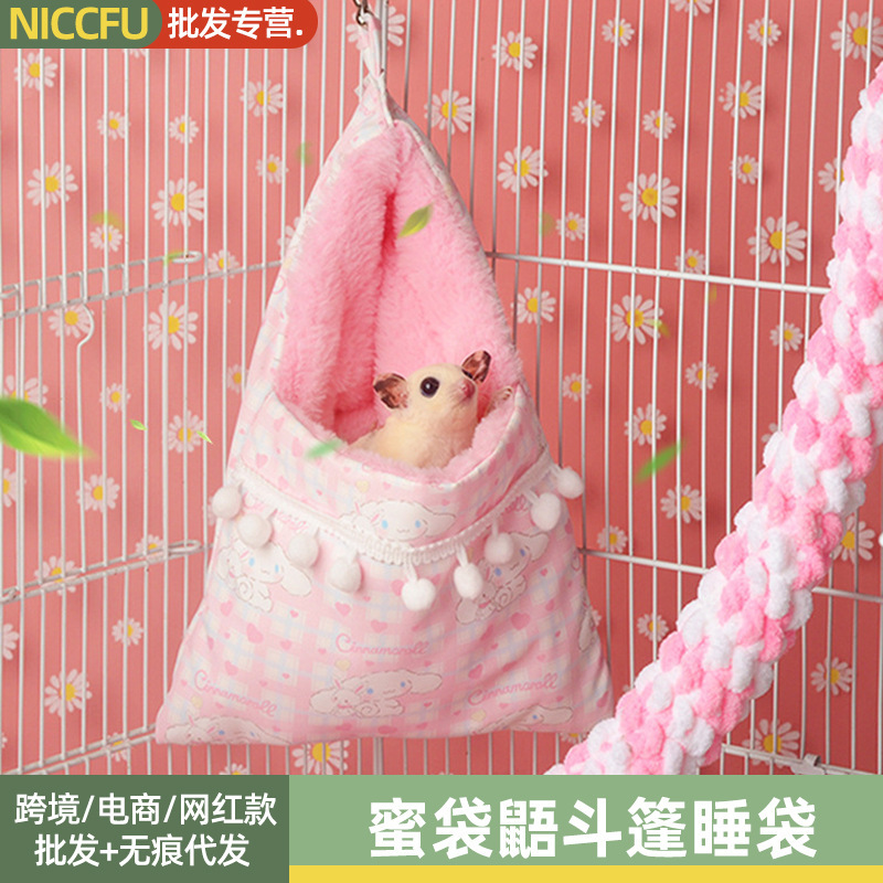 Sarang hewan peliharaan jizai hamster terbang tupai hangat musim dingin bisa dilepas dan dicuci gantung sarang Tianzhu mouse tempat tidur gantung katun sarang kue