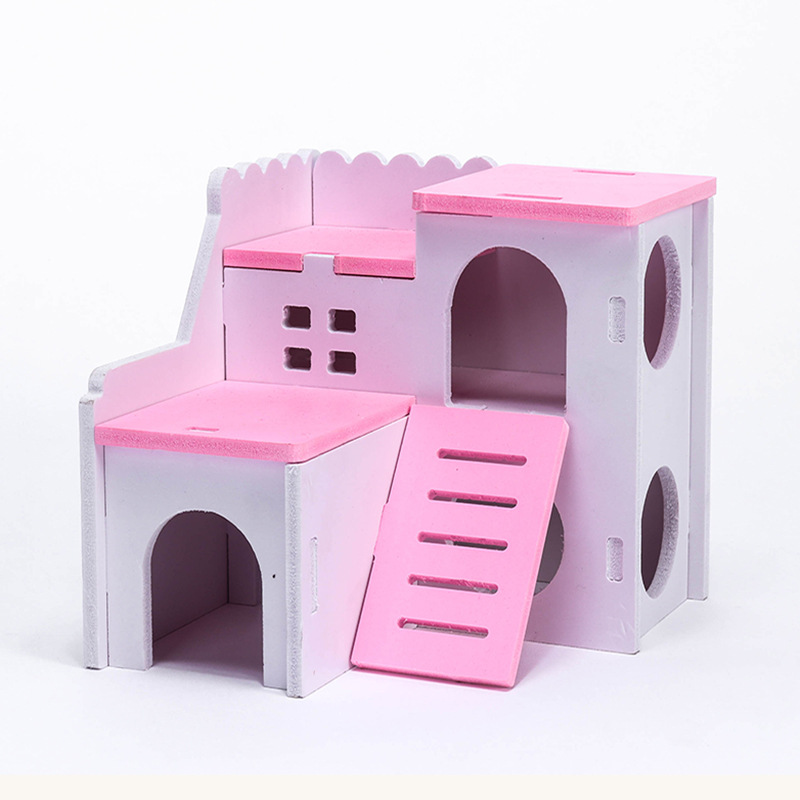 Produksi perlengkapan mainan hamster platform tampilan grosir sarang tidur Hamster Vila lapisan ganda sarang kecil kamar kayu besar