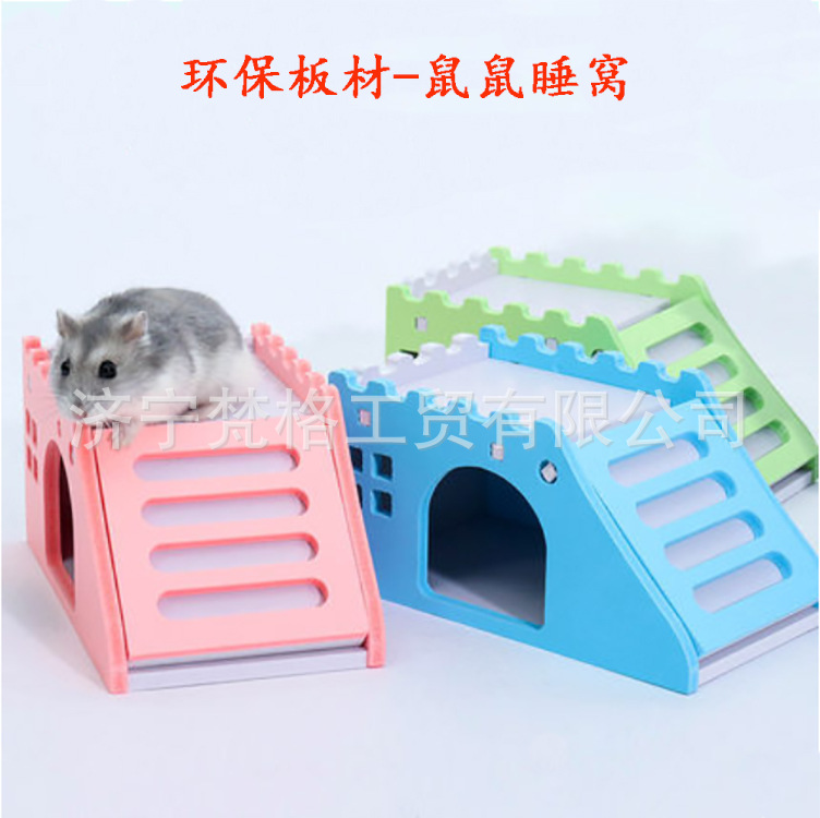 Penjualan pabrik persediaan kandang hamster portabel lapisan tunggal kandang hamster Beruang Emas Villa penutup plastik kandang hamster pastoral kecil