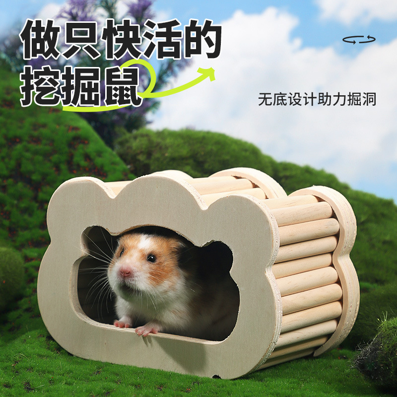 Dasar kandang hamster 47 kandang kayu padat Aksesori kandang hamster persediaan kandang beruang emas Villa paket lapisan ganda tunggal