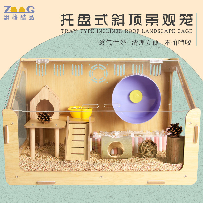 Perlengkapan kandang hamster portabel lapisan tunggal kandang hamster Beruang Emas Villa penutup plastik tinggi kristal transparan kandang pastoral kecil