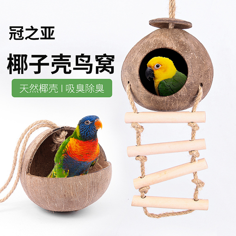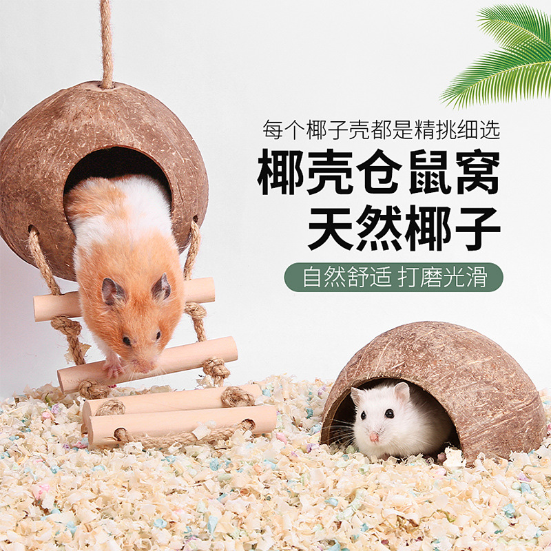 Golden Bear escape house cangkang kelapa pendingin musim panas, persediaan mainan burung bayan landak lanskap