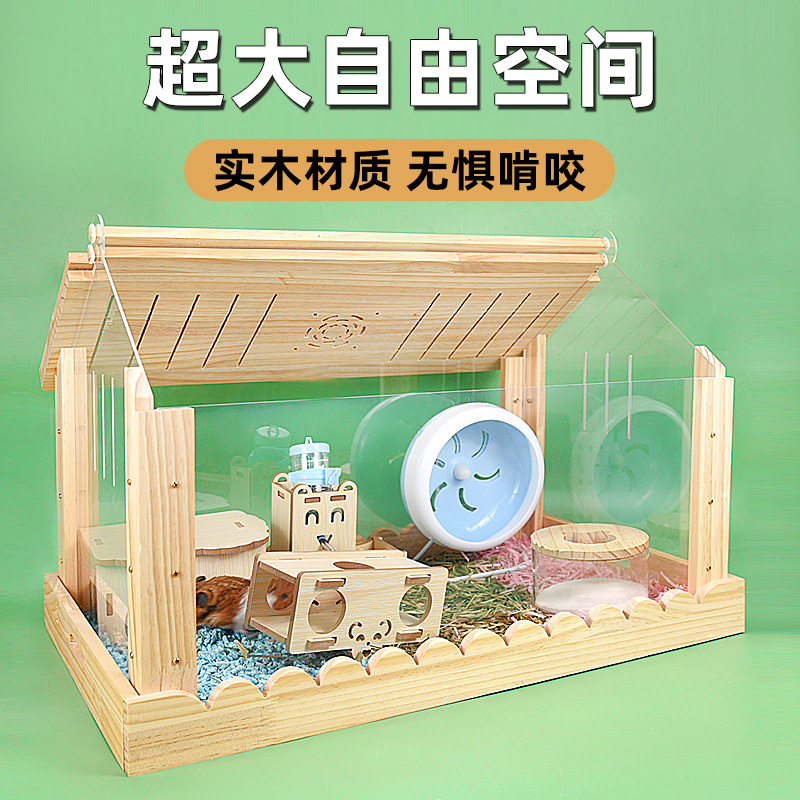 Kandang Hamster beruang emas kotak makan khusus hewan peliharaan kecil kebesaran mewah villa melihat kandang transparan pandangan panorama