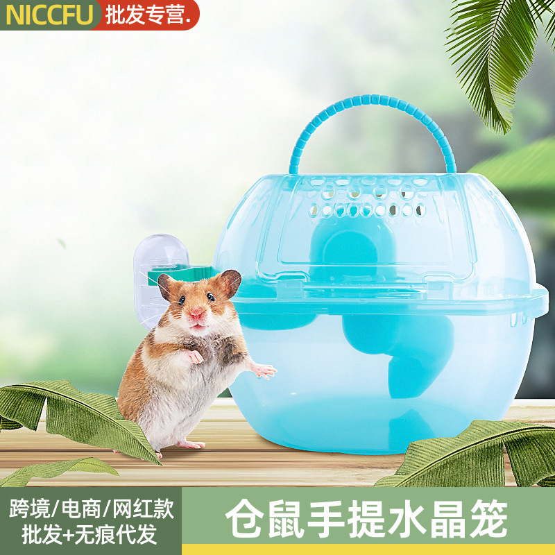 Kandang Hamster hewan peliharaan kecil portabel, tali luar Kandang kristal Jepang sederhana portabel kandang perlengkapan hewan peliharaan