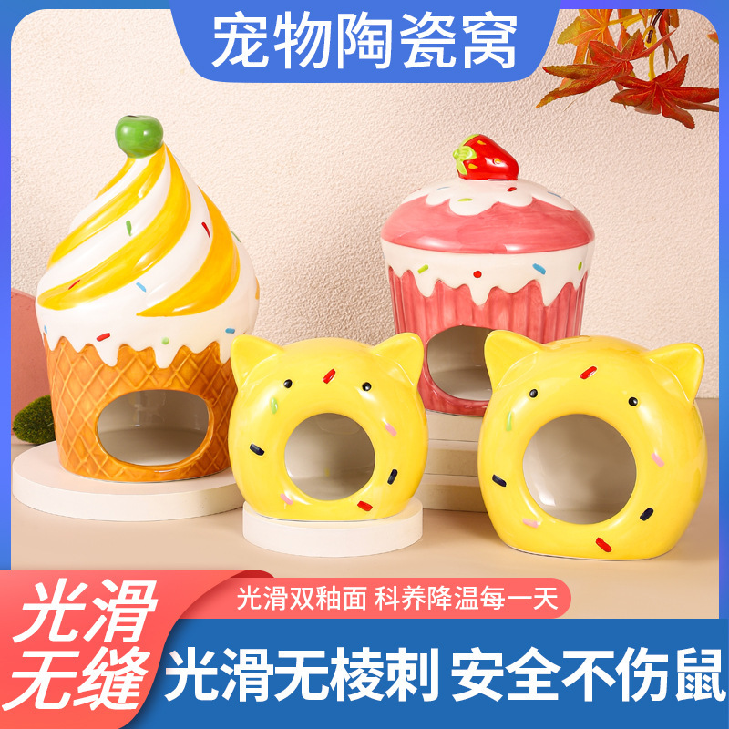 Grosir perlengkapan hewan peliharaan keramik sarang hamster musim panas dingin keramik keren sarang beruang emas 1859