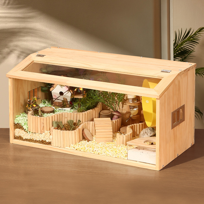 Baru kandang kulit Xiaoxin kandang hamster akrilik ekstra besar Beruang Emas Padat kandang kayu rutin kotak makan ayam lintas batas