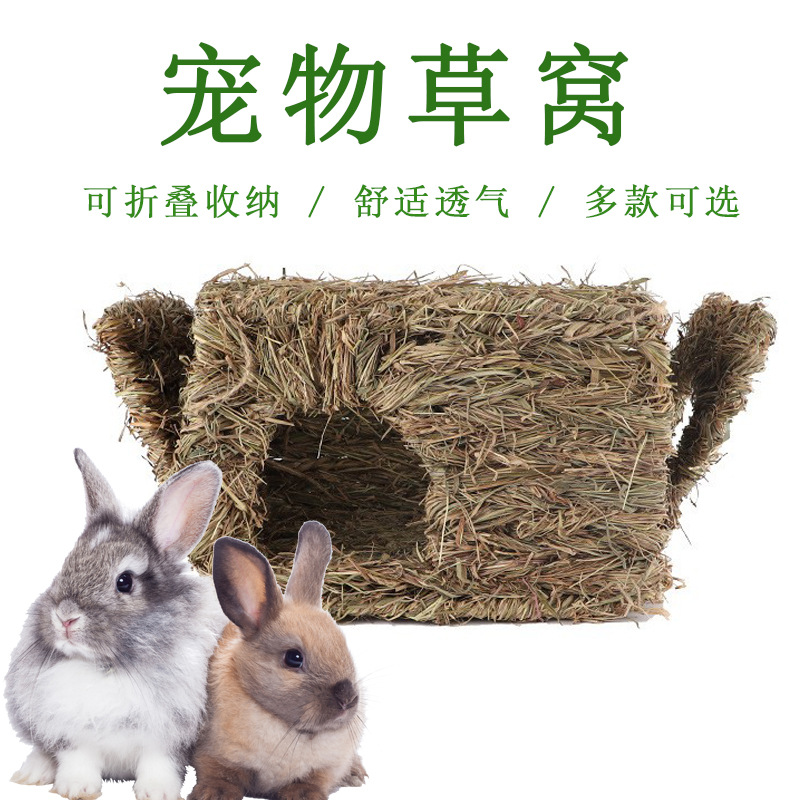 Grosir sarang Kelinci jerami tenunan tangan Totoro lipat rumah rumput persediaan kelinci