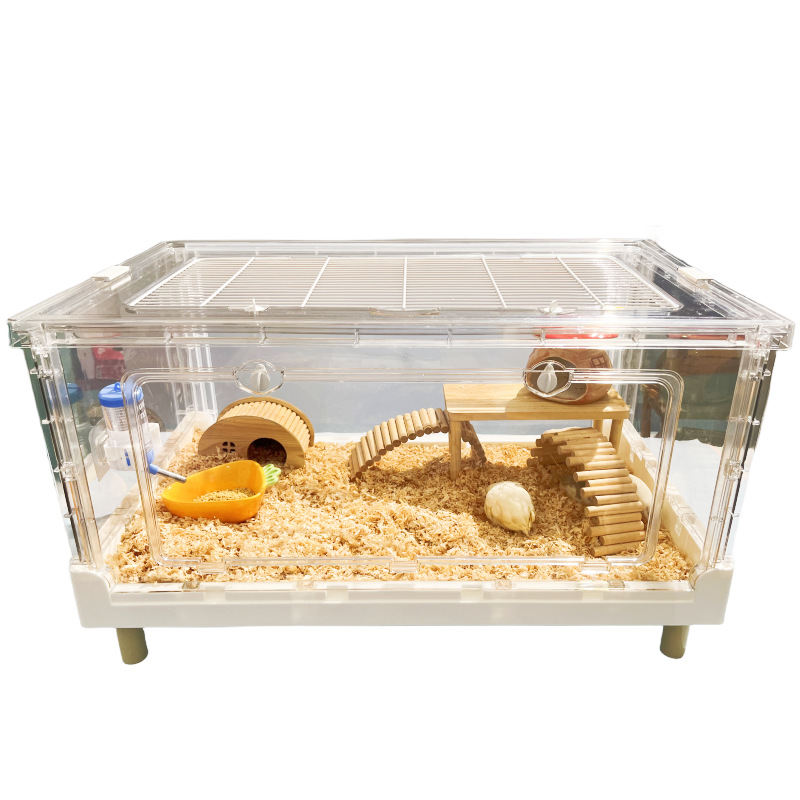 Pabrik grosir akrilik qt transparan hamster kandang beruang emas boks pembiakan melihat kandang penuh