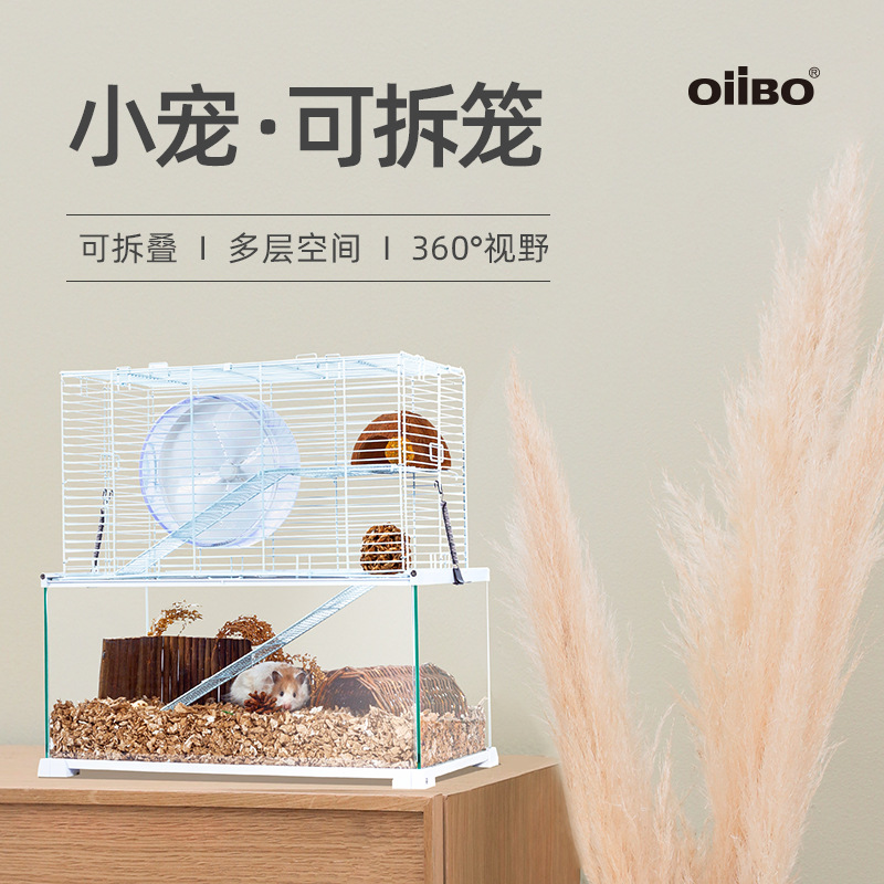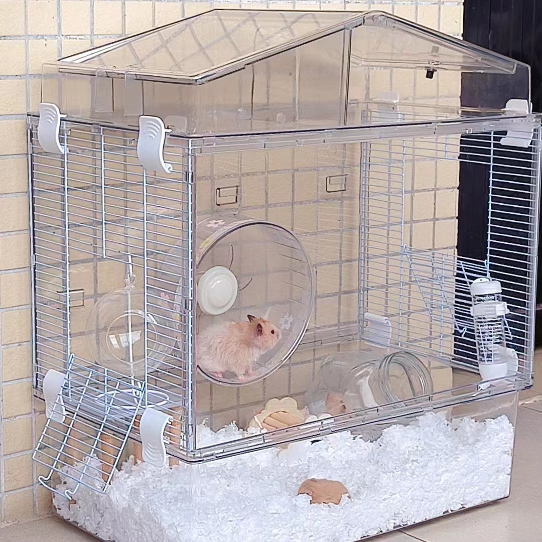 47 kandang hamster lapisan ganda, kandang dasar kecil Sarang beruang emas ukuran besar kandang hamster Villa empat musim Universal