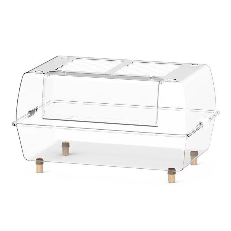 Hamster Beruang Emas 60 kandang dasar tinggi akrilik diperkuat transparan buram kotak makan hewan peliharaan