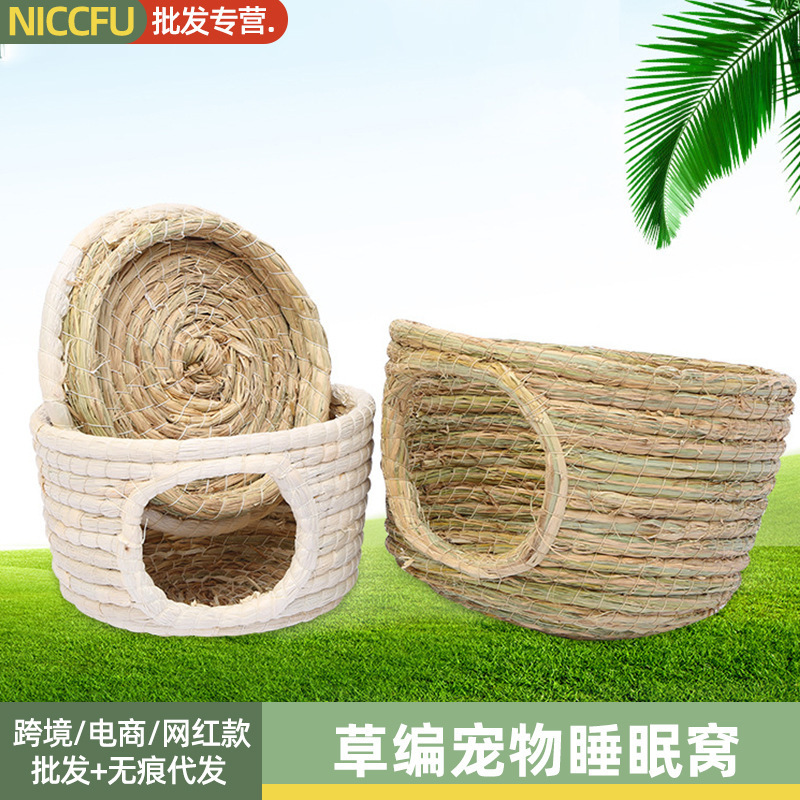 Pasokan lintas batas sarang hamster daun buluh buatan tangan sarang tidur sedotan Totoro sarang babi Belanda mainan hewan peliharaan molar