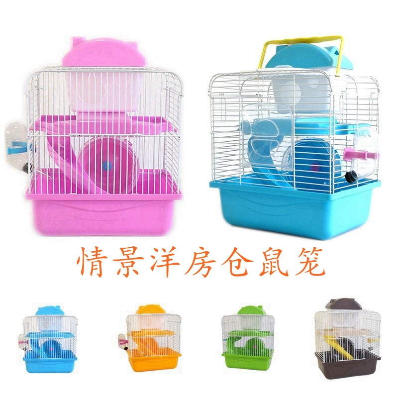 Penjualan pabrik kandang hamster persediaan Vila mainan kawat besi logam dua lapis hamster Rumah Pemandangan rumah kandang hamster